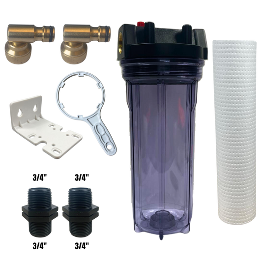 10" Water Filter Housing Kit – Fits 10" x 2.75" Cartridges, ¾" BSP + Hose Connectors